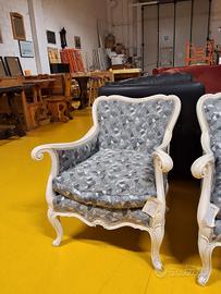 VENDO POLTRONCINA BIANCA STRUTTURA LEGNO TESSUTO FANTASIA GEOMETRICA €133,20 CADAUNA