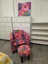 poltroncina da camera da letto o angolo lettura con poggiapiedi, cuscino e quadro coordinati. vendo a causa di trasferimento. consegna a mano, anche presso il centro commerciale di Arese.
