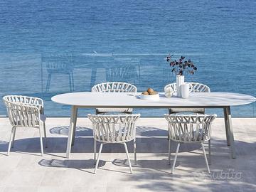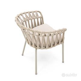 La seduta è accuratamente imbottita con poliuretano drenante a cellula espansa di varie densità e fibra di poliestere termolegata. Questa combinazione di materiali non solo offre un comfort superiore, ma assicura anche una rapida asciugatura, rendendo la poltroncina adatta a ogni condizione climatica. Nel prezzo della poltroncina è incluso il cuscino di seduta.