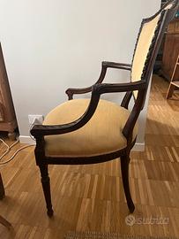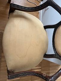 Poltronicina francese di fine ottocento autentica e ben tappezzata. La seduta ha un alone di una macchia d’acqua