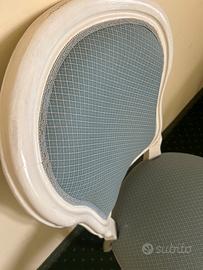 Poltroncina imbottita Stile Francese Luigi XV Colore bianco Buona imbottitura Tessuto azzurro carta da zucchero In velluto