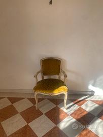 Poltroncina legno laccato e decorato imbottita e rivestita in velluto H 85 cm