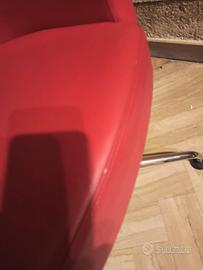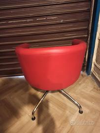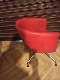 Poltroncina in ecopelle rossa base acciaio cromato.