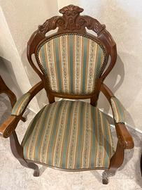 Vendo elegante poltroncina vintage in stile classico, realizzata in legno massello con schienale intagliato a mano.