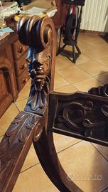 Vendo pregiata poltroncina in legno di noce con rilievi rifiniti a mano.