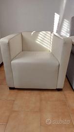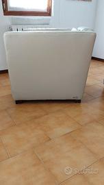 Poltroncina in pelle chiara con cuscino Poltrone e Sofà, design squadrato e moderno. Piedini in legno. In ottimo stato, usata poco