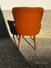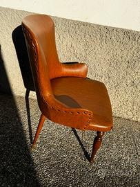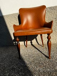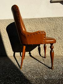 Questa è una poltrona vintage in pelle , caratterizzata da uno stile che ricorda le sedute Chippendale o Chesterfield, dotata di schienale alto e bordo chiodato in perfette condizioni