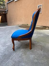 Vendo in buone condizioni poltroncina in stile rivestita in raso blu .