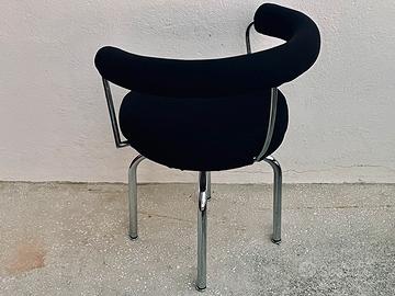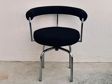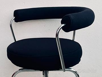Poltroncina girevole “LC 7 (Siège tournante, fauteuil)” su disegno originale del 1927 di Charlotte Perriand (successivamente integrata nella “Collezione Le Corbusier Jeanneret Perriand”), in produzione dal 1978 per Cassina.