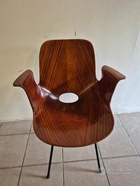 n.1 poltroncina mod.MEDEA con braccioli originale restaurata prodotta dai Fratelli Tagliabue design Vittorio Nobili struttura in metallo verniciato nero scocca in un unico foglio di compensato curvato a caldo in buone condizioni cm.80x62x53