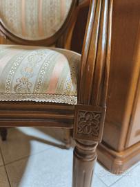 Poltroncina Parigina, ideale per camera da letto, salotto o ingresso, interamente in legno massello colore noce, schienale e seduta imbottita e tappezzata in stoffa damascata a righe beige e rosa tenue. In perfetto stato sia la parte lignea che i tessuti e le imbottiture. Trasporto: a carico dell'acquirente. Prezzo leggermente trattabile se concluso rapidamente.