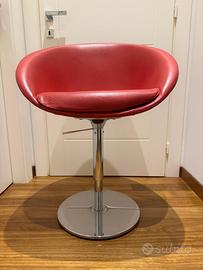 Poltroncina Pedrali girevole in pelle rossa