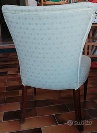 Poltroncina per camera da letto,in legno,con imbottitura e tessuto operato.
