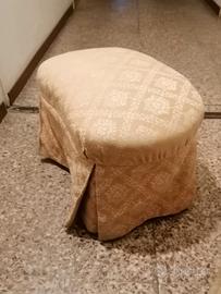Poltroncina vintage da camera completa di poggiapiedi o pouf . È possibile sfoderare e rivestire con tessuto a piacere