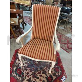 POLTRONCINA POZZETTO BIANCA TESSUTO SEDUTA E SPALLIERA ROSSA RIGHE.*BUONE CONDIZIONI
