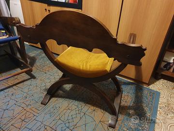 Poltroncina retro' in legno, sedile in velluto giallo ocra