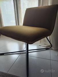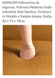 poltroncina da ingresso , stile nordico, struttura in metallo e ampia seduta in tessuto effetto lino color giallo ocra/senape; utilizzata pochissimo, misure in foto