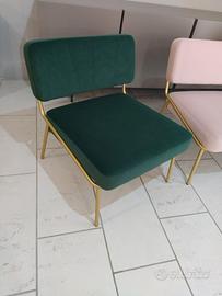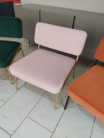 POLTRONCINA CON STRUTTURA IN METALLO E IMBOTTITURA PER CUSCINI DI SEDUTA E SPALLIERA .