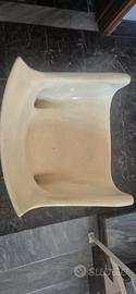 La poltroncinaVicarioè stata progettata daVico Magistrettialla fine degli '60 perArtemide. In produzione dal 1970 sino alla metàdegli anni '70. Realizzata in plasticaABS, questa poltrona è caratterizzata dalle forme fluide e dauna perfetta relazione fradesign, funzionalità e comodità. Icona del design italiano in stile futuristico, è stata utilizzata nella serie tv "Spazio 1999" ed è attualmente esposta nei più grandi musei del mondo fra cui il MoMA e il Metropolitan Museum Of Art di New York e il Musée Des Arts Décoratifs De Montreal in Canada. Materiale: Fibra di vetro Larghezza: 67 cm Profondità: 70 cm Altezza: 68 cm Altezza della seduta: 35 cm
