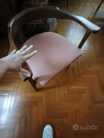 Poltroncina vintage in legno con seduta foderata in rosa antico; dalle forme tondeggianti molto elegante per la camera da letto o per saloncino. Per le misure il mio palmo è 20 cm!