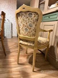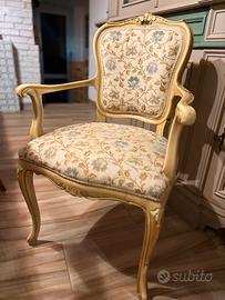 Vendo elegante poltroncina vintage in stile Luigi XV, risalente alla metà del Novecento, con struttura in legno finemente sagomata e finitura dorata.
