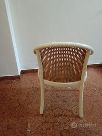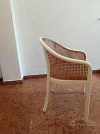 Vendo eleganti poltroncine in stile Thonet con schienale in paglia di Vienna e seduta imbottita. Design classico e raffinato, perfette per arredamento vintage, locali, ristoranti, studi o abitazioni. Condizioni: •buone condizioni generali •normali segni del tempo •struttura stabile 👉 Disponibili più pezzi 👉 Sconto per acquisto multiplo 📍 Ritiro a mano