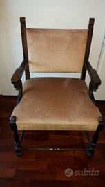 Poltroncina con rivestimento quasi nuovo da sistemare imbottitura e bracciolo.