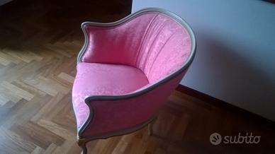 due poltroncine stile Veneziano antiche,con seduta in raso colore rosa antico e legno color pastello.