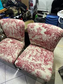2 poltroncine con tappezzeria che rappresenta le scene rurali. Perfette per la camera da letto oppure per un salotto classico.