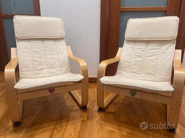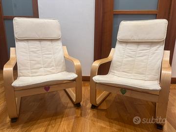 Vendo coppia di poltroncine per bambini Ikea POÄNG complete di cuscini. Vendo anche separatamente. Condizione ottime