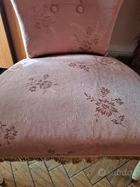 due poltroncine a gamba bassa in tessuto color rosa antico da pulire ma ancora solide