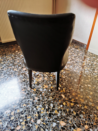 2 poltroncine camera ecopelle nere, altezza 80cm, altezza seduta 36cm, seduta 44x47cm.