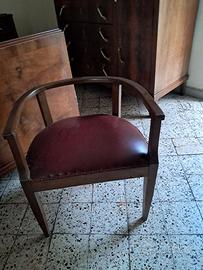 N. 2 Poltroncine stile art francese "anni 20", in noce marrone e seduta in pelle bordò. Buono stato di conservazione.