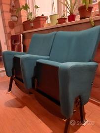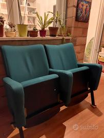 Poltroncine Cinema color verde acqua, in blocco da due, 120 cm larghezza 30/45 profondità x cm 82 altezza