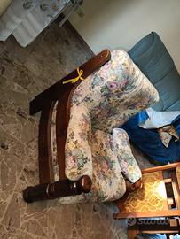 Vendo 2 poltrone classiche imbottite, struttura in legno massello e rivestimento in tessuto floreale.