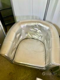 N. 2 Poltroncine con 2 pouf colore argento in buone condizioni (nella foto se ne vede uno solo di pouf ma sono 2). €. 45 cad. No spedizione, solo ritiro