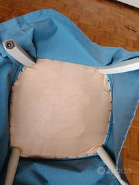 Salottino formato da 2 poltroncine e un tavolino rotondo. Su una poltroncina è presente una alonatura (vedi foto)