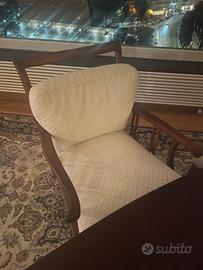 Set di 2 poltroncine vintage anni 60/70 in legno di noce con tappezzeria bianca. Sono adatte a diversi ambienti sia moderni che classici