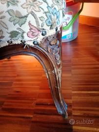 Poltroncine da salotto vintage, struttura in legno, rivestimento in tessuto a tema floreale, ottime condizioni