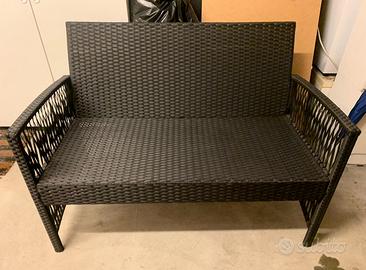 2 poltroncine e divano da esterno con cuscini bianchi in ottime condizioni