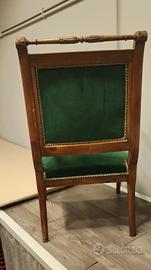 Splendida coppia di poltroncine in stile Impero, caratterizzate da una struttura in legno massello finemente intagliato e un raffinato rivestimento in velluto verde smeraldo. Un pezzo d’arredamento classico che dona prestigio e carattere a studi, salotti o ingressi eleganti.