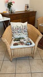 Vendo 2 poltroncine in vimini in buono stato Realizzate in fibra naturale Con cuscino schienale e copricuscini di ricambio