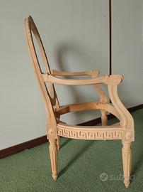 Poltroncine capotavola con braccioli in legno di Faggio disponibili al fusto grezzo, come da foto allegate da verniciare e imbottire.