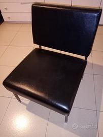 Poltroncine basse in pelle nera con piedi in metallo color argento. Non vendibili separatamente