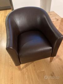 Vendo poltroncina con pouf abbinato di pelle color marrone scuro. Disponibili 2 pezzi. Prezzo trattabile.