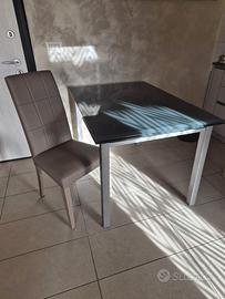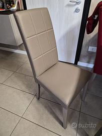 4 poltroncine in similpelle tinta tortora con abbinate 4 fodere rosse in tessuto