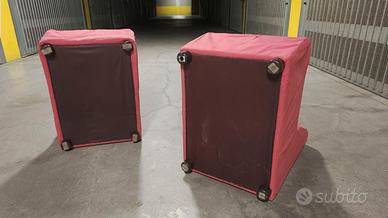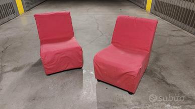 Poltroncine rosa in gommapiuma rivestite di tessuto, un po' rovinate dai gatti. Misure: larghezza 50, altezza schienale 70, profonde 70 cm. Solo ritiro, no spedizione. Adatte per essere rivestite con un tessuto nuovo o in pelle.