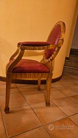 poltroncine in legno massello rivestite in foglia oro , con inbottitura e seduta in cuoio