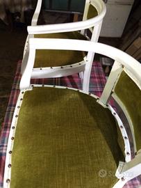 2 poltroncine restaurate in stile shabby. Tessuto originale, (lavato sterilizzato) Misurano:L. 50 P. 40 H. 63 30euro ritiro a mano 50euro spedizione con corriere