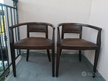 Poltroncine in pelle/cuoio vintage (presumo periodo intorno metà del 1900) in buono stato. Le sedie hanno le gambe posteriori a sciabola. Vendo a 50€ la coppia No spedizione